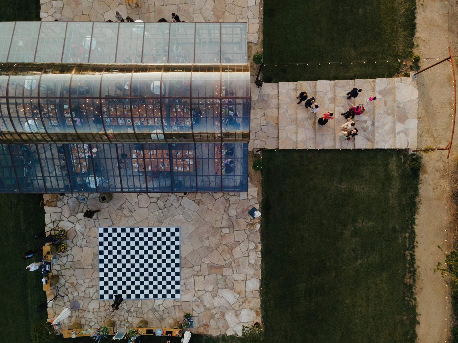 The grand space inside the greenhouse is an absolute work of art. The most wonderful space for their guests. The couple had their hearts set on a tablescape that was minimal yet inviting. The groom liked vintage elements and pops of color, while the bride preferred a more modern touch - a perfect blend that made the space feel so special. The bride designed the artwork for the paper goods & concept for the seating chart.