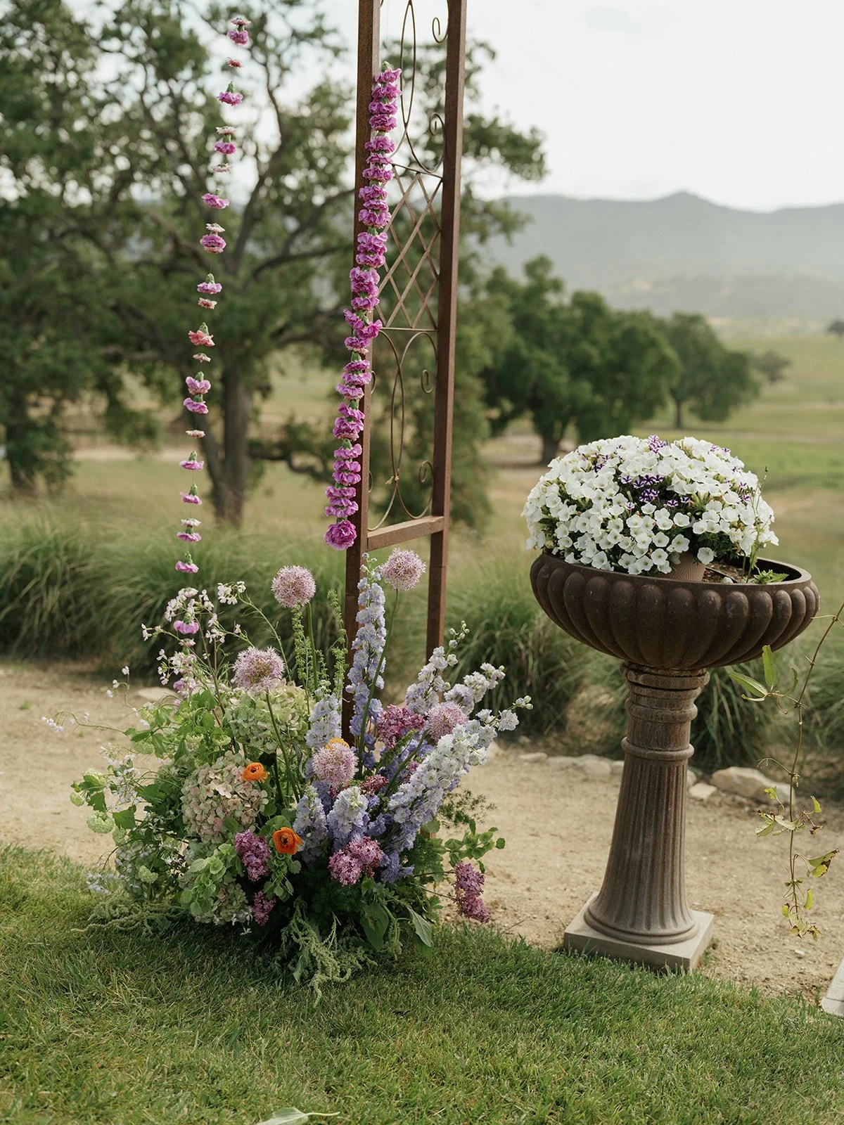 What makes a wedding day so special has so much to do with the personal touches and the space that holds us all. Riata Ranch was manicured to perfection & the space was enhanced with the most thoughtful details. The venue was intentionally designed for guests to wander, take in the beautiful views yet feel a sense of intimacy. Upon arrival guests walked through beautiful archways, passed a fountain of vibrant florals and were greeted with a welcome drink at the bar under the most magnificent willow tree.